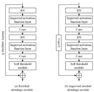 The improved residual contraction module is shown in Figure 2, where BN denotes batch normalization, Conv represents the convolution layer, and X represents the input. Compared with the original module, the improved residual contraction module replaces the ReLU activation function with the improved activation function layer proposed in this paper.