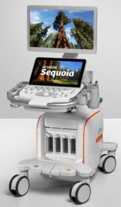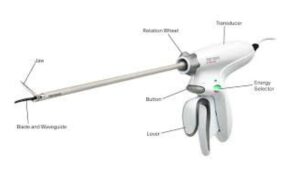 The imaging and surgical ecosystem considered here spans illumination, access, therapy, and diagnostics. A robust YAG:Ce single crystal light source enables ultra-high-efficiency illumination for minimally invasive optics (Fig. 1), which integrates with the endoscope–camera–video chain and the laparoscope for in-body visualization (Figs. 5 and 6). On the therapeutic side, ultrasonic vessel sealing and dissection support precise hemostasis in soft-tissue surgery (Fig. 2), while 3D ultrasound approaches are being explored for treating neurological diseases (Fig. 3). For diagnostic imaging fundamentals, a representative linear-array scan demonstrates beamforming and resolution trade-offs (Fig. 4), and two clinical-grade platforms—the Ecograf Acuson Origin and the Ecograf Acuson Sequoia—illustrate modern system implementations across workflows (Figs. 7 and 8).
