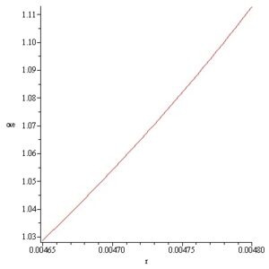 For find sufficient condition concerning instability the Jacobi requirement of instability condition has to be proven. This condition for the inner surface is: solution of (73) which verifies the initial condition \(\eta_i(R_{gi}) = 0\) and \(\eta_i'(R_{gi}) = 1\) vanishes at least twice on the interval \([R_{gi}, r_i]\). For the outer surface is: solution of (74) which verifies the initial condition \(\eta_e(r_e) = 0\), \(\eta_e'(r_e) = 1\) vanishes at least twice on the interval \([r_e, R_{ge}]\).