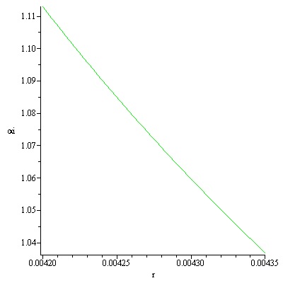 \[\label{eq3.28} R_{ge} – r_e < \pi \times \sqrt{\frac{\gamma X (\cos \alpha_c)^3}{g \times \rho}}, \tag{40}\] then the function \(\theta_e(r)\) defined by (35) vanishes at most ones on the interval \([r_e, R_{ge}]\)