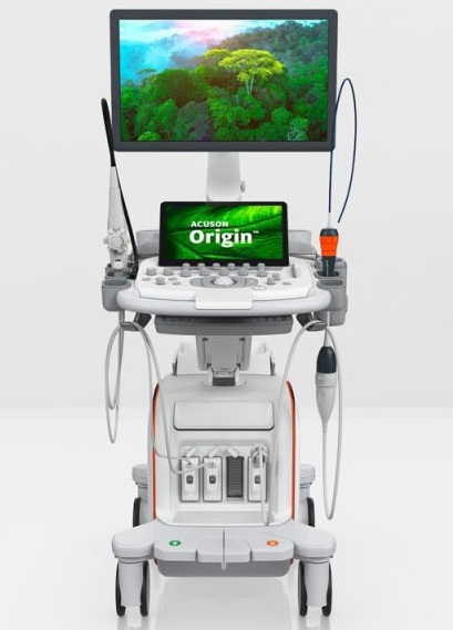 The imaging and surgical ecosystem considered here spans illumination, access, therapy, and diagnostics. A robust YAG:Ce single crystal light source enables ultra-high-efficiency illumination for minimally invasive optics (Fig. 1), which integrates with the endoscope–camera–video chain and the laparoscope for in-body visualization (Figs. 5 and 6). On the therapeutic side, ultrasonic vessel sealing and dissection support precise hemostasis in soft-tissue surgery (Fig. 2), while 3D ultrasound approaches are being explored for treating neurological diseases (Fig. 3). For diagnostic imaging fundamentals, a representative linear-array scan demonstrates beamforming and resolution trade-offs (Fig. 4), and two clinical-grade platforms—the Ecograf Acuson Origin and the Ecograf Acuson Sequoia—illustrate modern system implementations across workflows (Figs. 7 and 8).