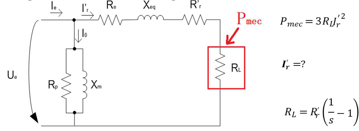 Replacing \[I_r^{\prime}=\frac{U_e}{\sqrt{\left(R_e+R_r^{\prime}+R_L\right)^2+\left(X_{eq}\right)^2}}.\]
